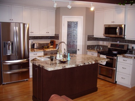 The kitchen remodels described by Remodeling Magazine transforms a functional but dated 200-square-foot kitchen. In this example, the cabinet boxes are left but are refaced with new doors, drawer fronts and hardware. The old appliances are replaced with new energy efficient models, laminate countertops are put in with a mid-priced sink and faucet and the walls and trim are repainted. An avid DIYer could tackle this project themselves or have it done professionally by general contractors in Calgary.