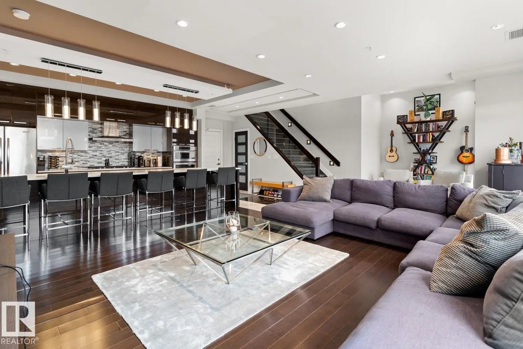Welcome to the pinnacle of luxury living in Windermere! This stunning penthouse offers a sophisticated loft-style design with panoramic city views from two private balconies. The chef-inspired kitchen boasts a massive island with eating bar, modern finishes, and high-end appliances—perfect for entertaining. The open-concept living space is bright and inviting, while the main floor also features a den plus a bedroom with walk-through closet and private ensuite. Upstairs, the lavish master suite impresses with a double-sided fireplace, jet tub, steam shower, water closet, and an oversized walk-in closet. Two additional bedrooms and a laundry room complete the upper level. With two titled parking stalls and access to a fully equipped fitness centre, this penthouse is the perfect blend of elegance, comfort, and convenience in one of Edmonton’s most desirable communities. Don’t miss your chance to call this exceptional penthouse home!