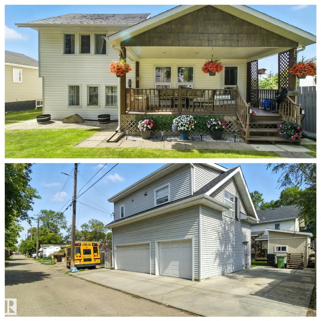 A beautiful Home with 1312 Sq ft main house and separate 670 Sq ft newer build GARAGE SUITE. No expense has been spared on this home and it has been loved from day one. Main house features a open concept, 3 bedrooms with a functional floor plan with a lovely finished basement 2 full baths and a updated kitchen and cozy main floor living room and cozy 3rd level family room. Living areas offer good ample space to grow your family. The GARAGE SUITE is built over the triple garage and has a modern open floor plan with large stylish kitchen with a large bedroom and full bath. The lot is oversized lot and a half and has a large shed and a beautiful yard with extra side parking for a RV and a 2 tiered deck on the main house and a stunning front Veranda for lounging and to enjoy this beautiful tree lined street.