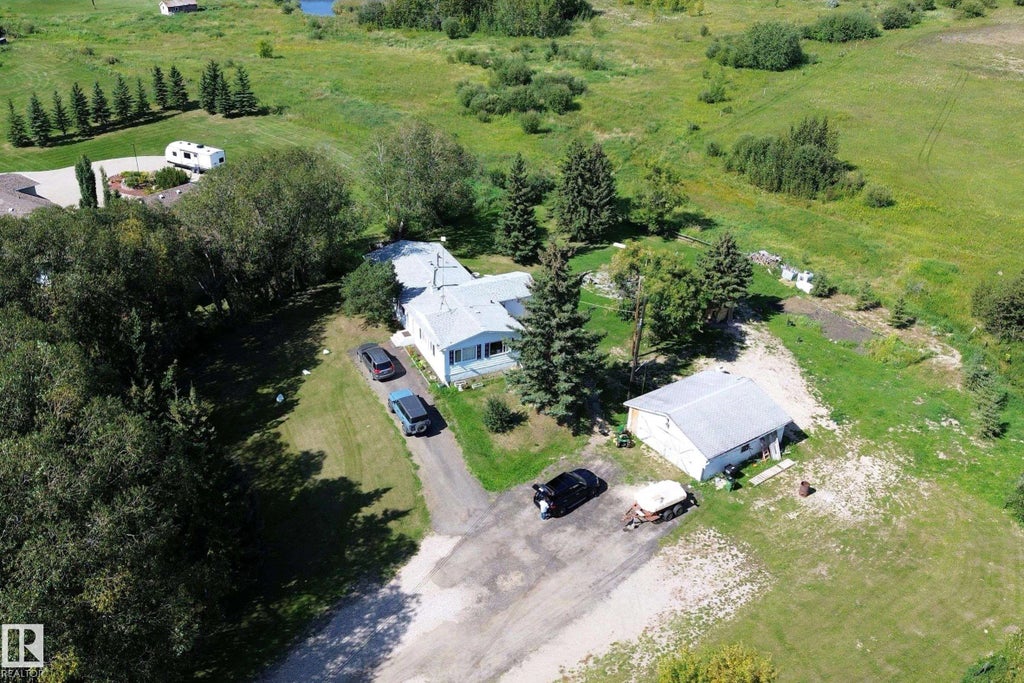 LOCATION, LOCATION! This beautifully renovated home sits on 2.99 acres within city limits, offering the perfect mix of space and convenience. Featuring luxury vinyl plank, quartz countertops, and an open, light-filled layout, the main floor includes a modern kitchen with ceiling-height cabinetry, stainless steel appliances, a spacious island, and a separate spice kitchen. The primary bedroom boasts a 4-piece ensuite, complemented by two additional bedrooms and another full bath. The finished basement offers two more bedrooms, a rec area, and laundry. Outdoors, enjoy a private oasis with a large deck, mature trees, and a firepit area—just minutes from the Anthony Henday, shopping, and amenities.