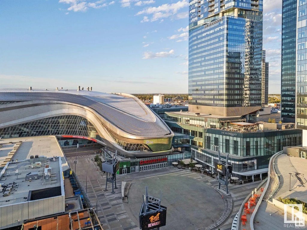 Visit the Listing Brokerage (and/or listing REALTOR®) website to obtain additional information. SPECTACULARLY WELL DESIGNED BRIGHT CORNER UNIT. The east facing floor to ceiling windows provide beautiful morning sun, while the south facing windows offer a stunning city view. Everything about this condo is first class from the top end Bosch appliances to the high-end interior finishing, such as engineered 5” plank hardwood flooring and quartz counter tops. This spacious 1159 SQFT condo is top of the line luxury, featuring east and south facing balconies, a separate den area, 2 beds each with their own full ensuite, an open concept living room, dining area and gourmet kitchen. The Legends Condo Building is all about LOCATION!! Situated on top of the JW Marriott hotel in the heart of Edmonton’s Ice District, the building has convenient pedway access to a large grocery store, Rogers Place arena, and numerous restaurants and lounges.