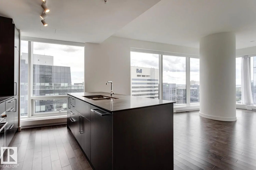 This PREMIUM EXECUTIVE CONDO with AMAZING VIEWS of downtown is absolutely gorgeous! The Legends Private Residences is located above the prestigious J.W. Marriot Hotel in the heart of Ice District. This CORNER UNIT, 1 bed + Den condo features floor to ceiling windows, quartz counters, TITLED PARKING & engineered flooring. The chef’s kitchen has a massive island, breakfast bar, quality built in appliances, gorgeous cabinetry and flows through to the living room offering spectacular views and access to the balcony. The unit is completed with a modern bathroom, laundry & office/den area. This well managed building offers resort like amenities which includes access to the Exclusive Body by Bennet Gym, swimming pool, spa, steam room, hot tub, outdoor patio with BBQ area plus PET WALK AREA, Billiards Lounge & more. Condo fees include heat and water and 24/7 concierge service. A convenient pedway system connects to LRT, ROGERS PLACE, restaurants & food market making the location unbeatable.