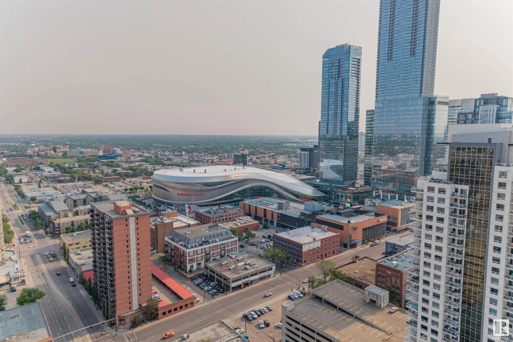 Motivated Buyer? Hello Motivated Seller* LOWEST PRICE! Welcome to one of the most desirable 1-bedroom corner units in the sought-after ICON II — located right on 104 Street, in the vibrant heart of Downtown Edmonton. With 724 sq ft of thoughtfully designed space, this is not your average downtown shoebox. FULLY FURNISHED & turnkey, all you need is your suitcase! Step into an open-concept layout bathed in natural light from countless windows. The modern kitchen is both stylish & functional, w/ granite countertops, SS appliances, sleek cabinetry & breakfast bar for casual dining, while central dining space anchors the heart of the home. The spacious primary bedroom easily fits a queen bed & is located next to a well-appointed 4-piece bathroom. You’ll also love the in-suite laundry, ample storage & UNDERGROUND titled parking! Take great skyline views from your private balcony, complete w/ gas BBQ hookup or step out to Rogers Place, Ice District, top dining, coffee shops, farmers market & River Valley trails.