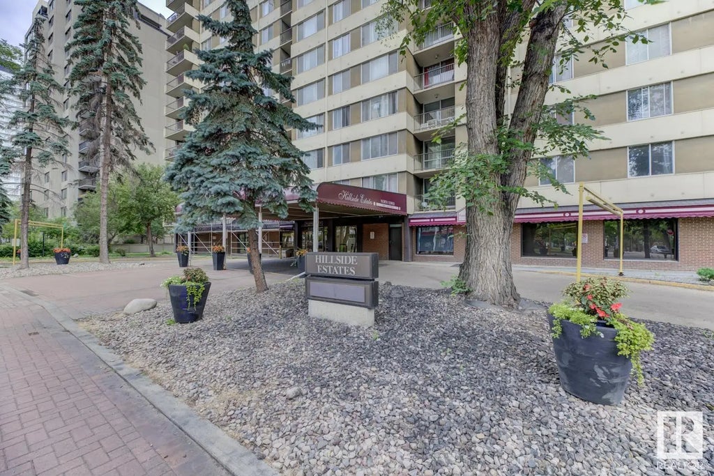 STUNNING 11TH FLOOR CORNER UNIT WITH BREATHTAKING VIEWS! Discover urban living at its finest in this exceptional 2-bedroom, 1-bathroom corner condo at Hillside Estates, where spectacular city skyline and river valley vistas greet you daily from the elevated 11th floor. This prime downtown location places you steps from Rogers Place and the Ice District entertainment hub, with trendy 104th Street dining and shopping at your doorstep, while offering easy access to the downtown business district and LRT transit. The unobstructed panoramic views from this coveted corner unit create the perfect backdrop for entertaining or enjoying quiet morning coffee moments. With secure underground parking included, you'll enjoy hassle-free condo living with building amenities and direct river valley trail access. The thoughtful 2-bedroom layout provides flexibility for home office space, guest accommodation, or roommate potential, making this ideal for professionals, investors, or anyone seeking the downtown lifestyle.