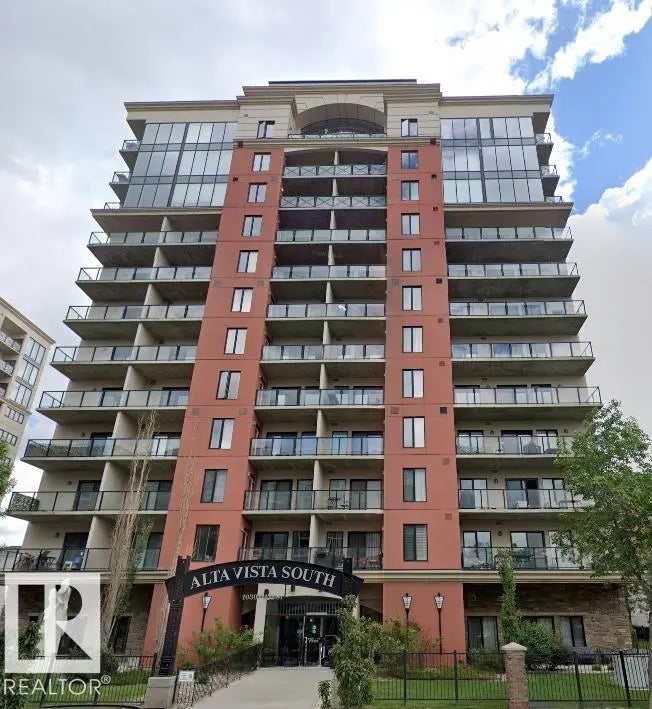 Spacious 9th-floor condo in Alta Vista South with sunny south-facing views and a 70 sq ft balcony. This 1 bedroom, 1.5 bath unit has a large bedroom with walk-through closet and ensuite, plus a convenient guest half bath. Recent updates include new hardwood flooring and fresh paint throughout. The kitchen offers stainless steel appliances, ample counter space, and a breakfast bar. The bright living area is designed for comfort and function, with plenty of natural light. Additional features include in-suite laundry, central A/C, and a titled underground parking stall. Alta Vista South is a concrete high-rise offering amenities such as a fitness centre, guest space, social lounge, and secure entry. Located in downtown Edmonton steps from MacEwan University, Rogers Place, the LRT, restaurants, shopping, and everyday conveniences.