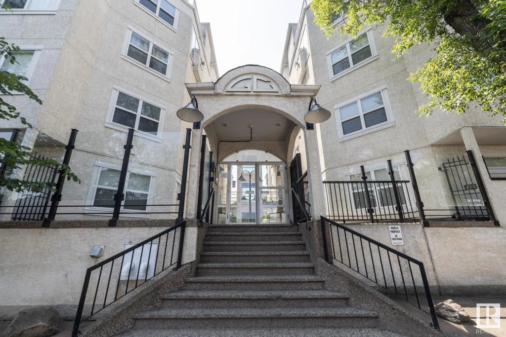 Perfect for the professional! Want to live in one of the city's most sought after areas? This lovely upgraded 2 bedroom, 2 bathroom condo in Garneau Court checks all the boxes and it's just steps from the University of Alberta. This stylish unit features hardwood floors, granite countertops, a commercial-style fridge/freezer, stainless steel appliances, & custom Hunter Douglas blinds. Elegant crown mouldings, sculpted plaster ceilings, & a cozy gas fireplace add character & warmth. Enjoy the private, oversized southwest-facing balcony located high above ground level. Additional features include air conditioning, in-suite laundry, a titled underground parking stall with a storage cage, & a secure building with elevator & interior courtyard. Recent capital improvements to the building include boiler system, elevator, & enhanced building security. This well-managed complex offers peace of mind and unbeatable access to U of A, Whyte Avenue, shopping, restaurants, and transit. Take a peek & fall in love.
