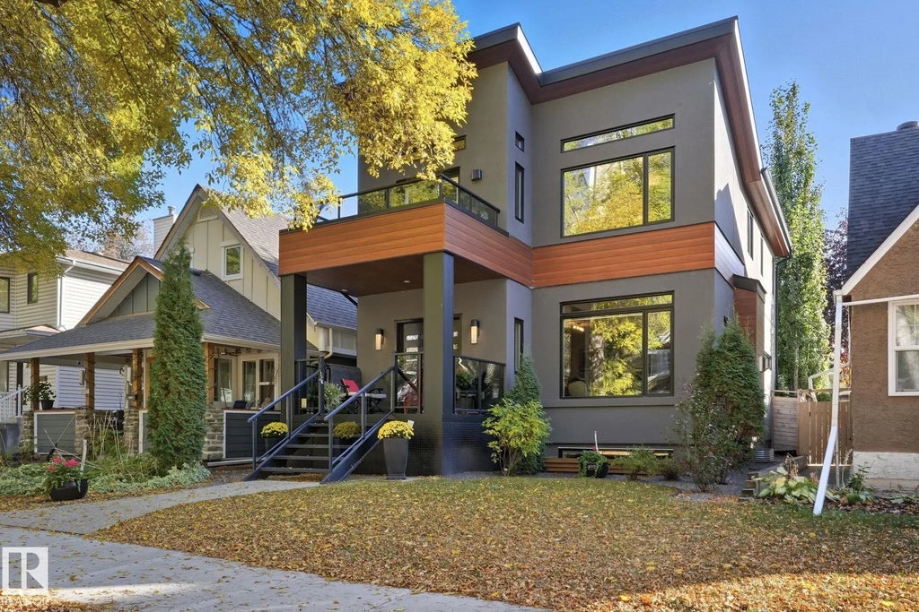 CUSTOM BUILT home with Legal 2-Bedroom Suite in the Heart of Garneau! Just ONE BLOCK from the University of Alberta, Whyte Avenue. Thoughtfully designed and meticulously finished, this home features Central A/C, Eco-Shield Argon windows, and an open-concept main floor filled with high-end custom finishes. showstopper kitchen with Bosch appliances, a waterfall quartz island and backsplash, and a walkthrough pantry with coffee bar. Upstairs, you'll find three bedrooms plus a vaulted den, including a luxurious primary suite with private second-floor balcony overlooking a beautiful, mature tree-lined street. The fully legal 2-bdrm BASEMENT SUITE features a PRIVATE ENTRANCE, its own laundry, and a full kitchen—ideal for rental income or multi-generational living. Additional highlights include a custom-built aluminum front porch, double detached garage, and a south-facing, professionally landscaped, low-maintenance yard.