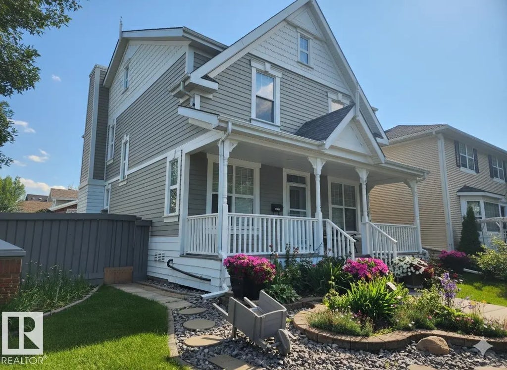 Welcome to this beautiful home in Griesbach, offering nearly 1,900 sq.ft. of stylish living space. Features include 9' ceilings, luxury vinyl flooring, a gourmet kitchen with 8' island and stainless steel appliances, and a bright living room with gas fireplace. Upstairs boasts 3 bedrooms, including a primary suite with 4-piece ensuite and walk-in closet, plus convenient laundry. The finished basement adds a large rec room and extra bedroom. Enjoy year-round comfort with central air conditioning. Outside offers a private fenced yard, deck with gas line, and a 22' x 22' double garage. Minutes to downtown, schools, shopping, and parks—this move-in ready gem combines comfort, style, and location.