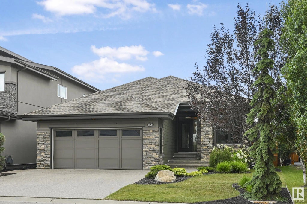 Stunning EXECUTIVE bungalow in Edmonton's most sought after and prestigious golf course communities. This Kimberley built home is located on a quiet street steps to JAGARE RIDGE golf course. Step into elegance with a convenient and thoughtful floorplan. Main floor features 10 foot ceilings, pot lights, bright windows, speaker system, maple hardwood flooring, chef's kitchen with large island, granite countertops, modern backsplash, and walk through pantry to the mud room. Main floor laundry. Great room with linear fireplace, dining area with amazing views of the backyard. Primary suite has access to the deck, walk in closet, 5 piece ensuite complete with soaker tub and double shower with bench. 2nd bedroom/office completes the main level. West sunny backyard with a large deck, perennials, beautiful trees and mature landscaping. U/F basement is waiting for your design and could easily accomodate 2-3 more bedrooms. Double attached garage is heated with floor drain. Central A/C, water system and more.