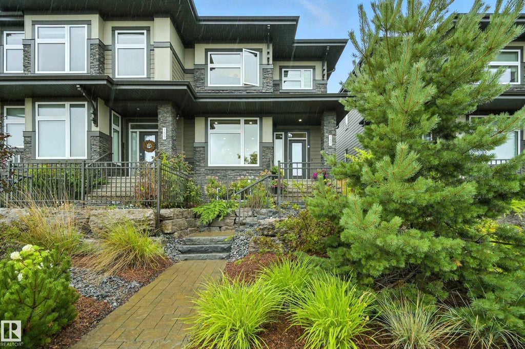 Experience luxury living in Jagare Ridge—with NO CONDO FEES! Surrounded by a championship golf course, lush trails, and peaceful ponds, this townhome blends elegance with convenience. The open main floor impresses with soaring 9' ceilings, large windows, and an electric fireplace. The chef’s kitchen features Jennair appliances, quartz counters, to-the-ceiling cabinets, built-in bar fridge, a stylish eat-up island, and designer lighting, overlooking an open-to-below dining area that adds dramatic flair. A mudroom with storage and 2 pc bath complete the level. Upstairs offers a bonus room, TWO primary suites each with 4 pc ensuites & walk-in closets, plus upper laundry. Enjoy A/C, smart windows, blinds & lighting, closet organizers & built in safe, and a private deck with patio & low-maintenance turf & security system. Double attached insulated garage included with electric car charger. Close to golf, shopping, dining, and top-rated schools—this home delivers upscale finishes and effortless living.