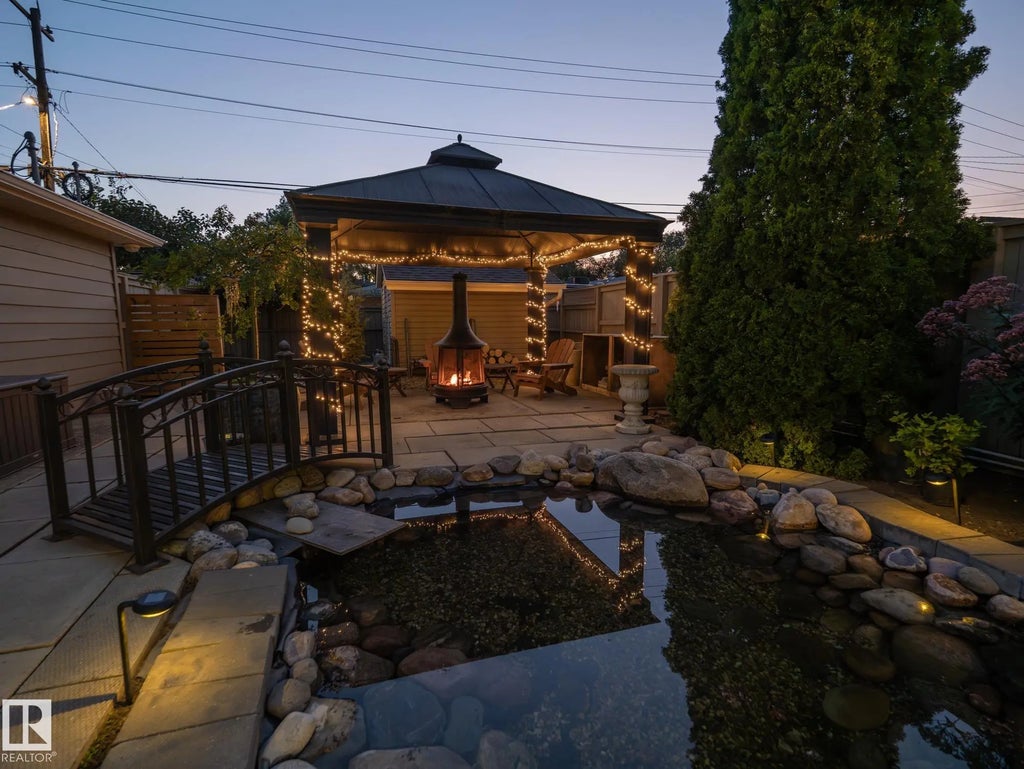 Tucked away in Edmonton’s beautiful Holyrood, this isn’t just a renovation—it’s a transformation. Inside, a stunning modern redesign. Outside, a backyard oasis you’ll never want to leave. Step into a bungalow that welcomes you with a gorgeous front entrance leading to a bright living room with expansive windows, a stylish dining area, and a fully renovated kitchen featuring butcher block counters, stainless steel appliances, and elegant tile floors. The primary bedroom is paired with a walk-in closet complete with custom cabinetry and a spa-inspired bathroom with a tiled shower. A second bedroom (or office) and convenient mudroom finish the main level. Downstairs, you’ll find a spacious family room, second full bath, another 2 bedrooms, laundry, and plenty of storage. The landscaped yard is a showstopper—complete with a serene pond, pergola and fire area, BBQ station, two sheds, and endless space to relax or entertain—all paired with an oversized double garage.