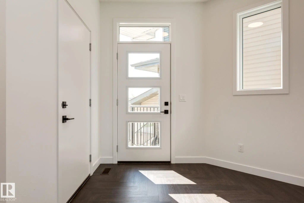 Discover Your Dream Home in Kinglet Gardens. Nestled in a serene community connected to nature and trails, this exquisite 3-bedroom, 2.5-bathroom duplex offers the perfect blend of style and functionality. Step into the open-concept main floor with soaring 9’ ceilings and half bath. The upgraded kitchen boasts quartz countertops, sleek cabinets, a pantry, and a waterline to the fridge for added convenience. Upstairs, you’ll find a versatile flex area, a spacious laundry room, a full 4-piece bathroom, and 3 generously sized bedrooms. The master suite is a private retreat, complete with a walk-in closet and ensuite with double sinks! Additional features include a separate side entrance, legal suite rough ins, FULL LANDSCAPING, double attached garage, unfinished basement with painted floors, 3K appliance allowance, triple-pane windows, and a high-efficiency furnace. Buy with confidence—built by Rohit. UNDER CONSTRUCTION! Photos may differ from actual property. Appliances NOT included.