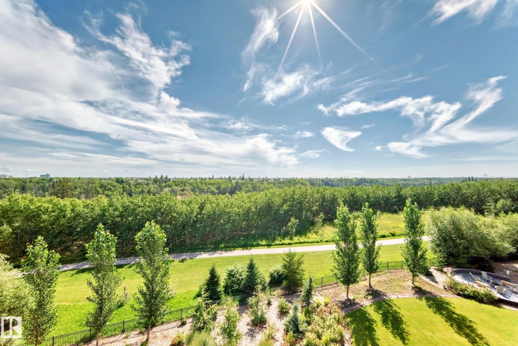 Experience Unrivaled Luxury and Ravine Living in this stunning 1,700+ sqft. condo, perfectly positioned with rare Southeast Whitemud Creek Ravine views. Located in prestigious Magrath Heights at Edge at Larch Park, this immaculate, pet-free home features 2 spacious bedrooms, a versatile office/den, 2 full baths, 9’ ceilings, and a gourmet kitchen with a large island, gas cooktop, and wall oven. Relax in the bright living room with its stylish fireplace, or step out onto the expansive balcony for peaceful ravine scenery. The primary suite boasts a walk-in closet and spa-like ensuite, while the second bedroom also has a walk-in closet. Enjoy 2 underground parking stalls (a $25,000 EV charging station upgrade) and a large storage room for added convenience. World-class building amenities include a Chef’s Kitchen & Lounge, yoga and meditation rooms, art/craft spaces, library, conference room, pet wash, and outdoor firepit. Incredible opportunity—luxury, comfort, and nature await!