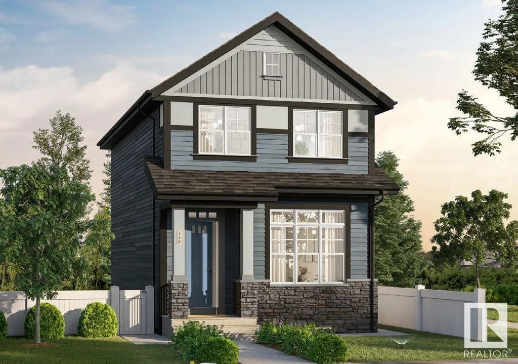 Discover the modern living in this quality-built Anthem home, perfectly situated in the amenity-rich community of McConachie Heights. This beautiful home offers, SIDE Entry for basement, 3 Bedrooms, Quartz Counter Tops, Kitchen Appliances, Vinyl Flooring on main floor, in bathrooms, in laundry room and Carpet on Upper Floor. Convenient Upper Floor Laundry, Stunning lighting fixtures, His/Hers sinks in Ensuite, Large dining area, bright living room. Open concept main floor maximizes space.*Home is still under construction. *Photos of previous build, interior colors are represented. *Actual colors and upgrades may vary.