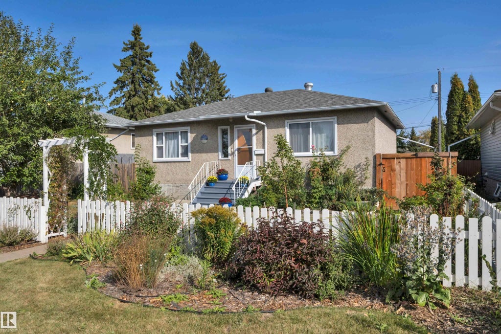 Welcome to Prince Rupert! This well maintained 3 bed / 2 bath bungalow features a newly renovated basement with 2nd kitchen. Ideally located on a quiet street and large lot, the white picked fence will make you feel immediately at home. The vintage front door and original hardwood floors welcome you into the charming living room, with reclaimed vintage fireplace mantle and lighting. Just down the hall is the 4-piece main bath and 2 generous bedrooms. The finished basement with separate entrance offers a 3rd bedroom, rec room, stylish kitchen, and oversized utility room with your laundry and plenty of space for storage. Ideal for entertaining, your large backyard is complete with a concrete patio, greenhouse, vegetable garden, and well manicured lawn. This turnkey home features vinyl windows, a newer furnace (~2021), updated shingles (~2015), new appliances, and a rear pad for extra parking. Easy access to public transit, schools, parks, NAIT, the Royal Alexandra Hospital, and Kingsway Mall. A must see!