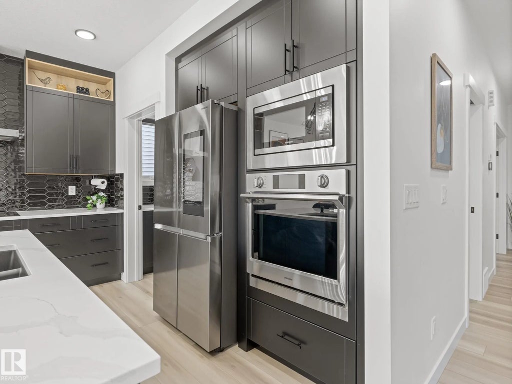 Experience elevated living in this beautifully designed 2350sqf 5-bedroom walkout home, where natural light pours through oversized windows and highlights the spacious open floor plan. The heart of the home is a chef-inspired kitchen with premium finishes and a dedicated spice kitchen—perfect for culinary enthusiasts and entertainers alike. Step into comfort and convenience with this main floor bedroom, perfectly positioned. Upstairs, each bedroom provides comfort and style, with the primary suite featuring a spa-like ensuite with his/hers vanities and oversized walk in shower. Step outside to enjoy a landscaped yard with a spacious deck—perfect for summer barbecues or relaxing evenings. Poured concrete steps take you to the stamped concrete deck below where you can relax with the views of the pond. The walkout basement is a clean slate waiting for your personal touch to be added... So many options with this large, bright space! This home shows 10/10 We cannot wait for you to see it!!