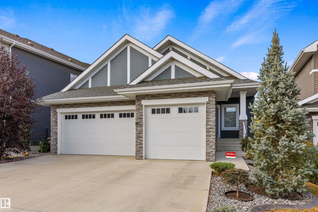 Immaculate 1500 sqft WALKOUT BUNGALOW feat. a triple car garage & a prime location BACKING ONTO TREES & WALKING TRAILS. This stunning home offers a open-concept main floor w/ large windows & beautiful natural light throughout. The chef’s kitchen is equipped w/ a gas cooktop, built-in oven, tile backsplash, eating bar island & undermount sink — perfect for entertaining. The dining room is just off the kitchen w/ a coffered ceiling. The spacious living area has a cozy gas f/p & a VAULTED CEILING. The primary suite offers a spa-like 5pce ensuite & a walk-in closet. A den, main 4pce bath & laundry room complete the main floor. The basement opens to spacious family area w/ wet bar, 2 more bedrooms & a 4pce bath. Additional feat. include LED undermount exterior lighting, a full security system & a epoxy-coated triple garage floor — ideal for car lovers or anyone who appreciates a clean, polished finish. Just minutes from the Henday & Big Lake! This immaculate home truly stands out — a must-see!