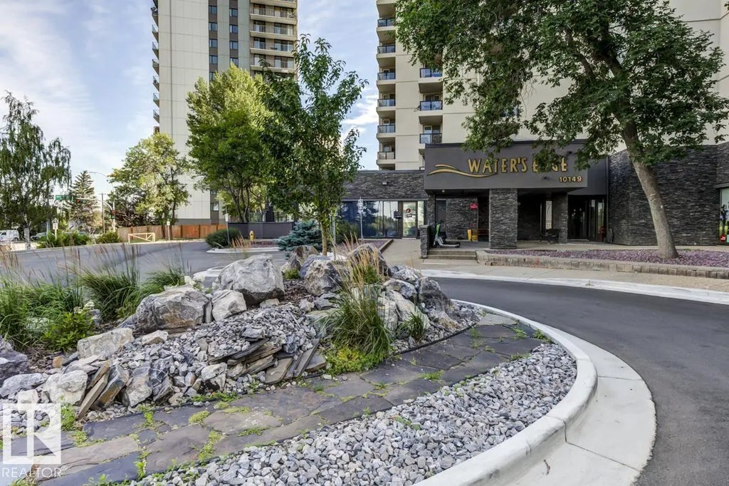 Spectacular City Views from this 850 sq.ft 2 bedroom + 2 bathroom TOP FLOOR in the Waters Edge. Excellent location on Saskatchewan Drive with the biking/walking trails at your doorstep, close to Whyte Avenue, U of A ... minutes to downtown! Sunny south exposure. Bedrooms at the opposite ends of the living area each with a full 3 piece ensuite (large acrylic walk in shower) + 4 piece bathroom (up graded tub surround) Renovation's include granite counter tops in the kitchen & bathrooms, stainless appliances (4 years) vinyl plank, baseboards, paint, built in microwave. IN SUITE CENTRAL AIR CONDITIONING / WASHER - DRYER (exclusive to top floor only) ... assigned parking stalls, # 500, 726. Building amenities include an exercise room, squash courts, professional on site residential Manager, Custodian and night Security Guard.
