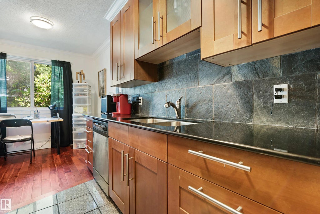 Fantastic opportunity in Strathcona! Just a short walk to the U of A and even closer to Whyte Avenue, this extremely well maintained, remodeled condo is perfect for a first time buyer or investor. This unit is a good size with a functional layout, the kitchen features upgraded cabinets and countertops and there is newer flooring throughout. The bedroom is a good size with closet space to match and has insuite laundry too. This condo also has an upgraded bathroom and plenty of storage. Close to all amenities, this condo is in a fantastic location!