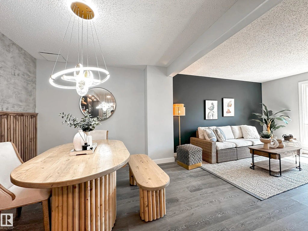 Welcome to this brand new renovated townhome, walking distance to West Edmonton Mall, and easy access to all amenities! When enter, you will be amazed by the luxury renovated open concept Kitchen, finished with trendy black and wood grains kitchen cabinets, and lustrous quartz countertop throughout. The brightening living room over looking the south backyard, bringing in tons of natural lights to the home. There are 3 bedrooms including the very spacious master bedroom can walk into the hotel style all tiled bathroom-floating vanity, and gleaming tiled standing shower. Fully finished basement has a 4th bedroom containing a big window-rare to find at basement. Other upgrades including, newer hot water tank, high efficiency furnace, custom built accent wall and opening bench, all modern lighting fixtures, stainless steel appliances. This unit is surrounded by greenspace and trees, great for kids to play around. Perfect home, do not miss!