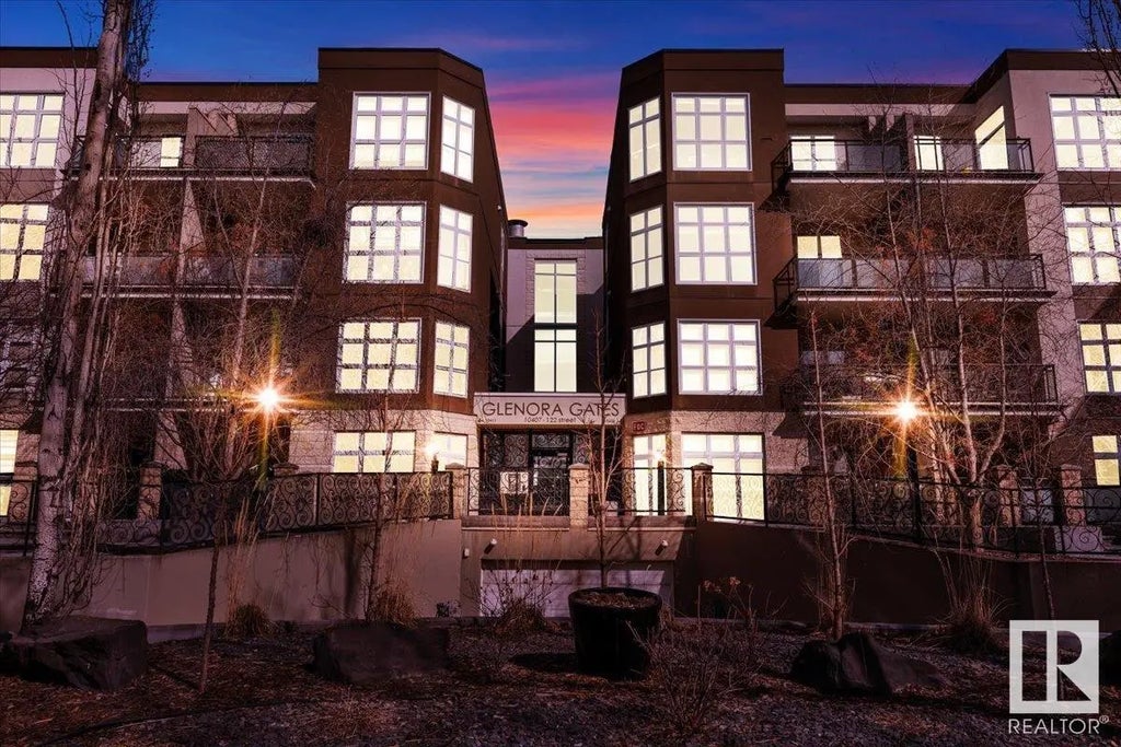 Top-floor condo at Glenora Gates with unobstructed downtown views in the heart of Edmonton — Low condo fees and Pet-friendly building, it's perfect for first-time buyers, students, or investors! This bright unit features soaring 10-foot ceilings with large East-facing windows, equipped with modern blinds, that fill the space with natural light. Unbeatable location just steps from 124th Street, Manchester Square, Brewery District, Roger's place, MacEwan, and more — Great access to local shops, restaurants, gyms...etc. The upcoming Valley West LRT station is less than a block away for quick access to anywhere in the city. Everything you need right at your doorstep! Multiple River Valley trails are just blocks away. Upgrades include a newer carpet in the Bedroom, engineered hardwood, quartz countertops in the kitchen with a breakfast bar, newer SS appliances, Central A/C for the HOT summer months, & HWT replaced in 2018. Comes with a secure Underground parking stall and private storage cage. Don't Miss Out!