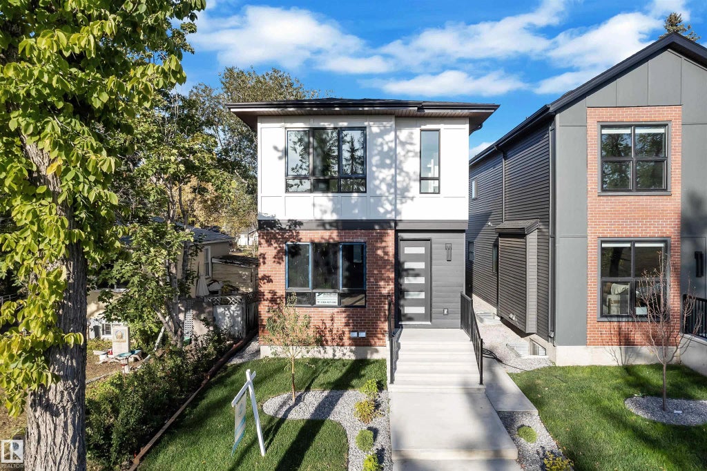 Stunning new Westmount infill with a legal 2-bedroom basement suite! This modern 2-storey offers nearly 2,000 sq ft above grade with a bright open layout and premium finishes throughout. The main floor features a spacious living area, designer kitchen with two-tone cabinetry, quartz counters, stylish backsplash, full bathroom, and a flex room ideal for an office or guest space. Upstairs you'll find 3 bedrooms including a primary suite with walk-in closet and dual vanity ensuite, plus laundry and another full bath. The fully finished basement includes a legal 2-bedroom suite with separate entrance—perfect for rental income or extended family. Complete with a double detached garage. Located steps from Westmount Off-Leash Park, minutes to downtown, 124 Street shops, and top-rated schools. A perfect blend of modern luxury and smart investment!