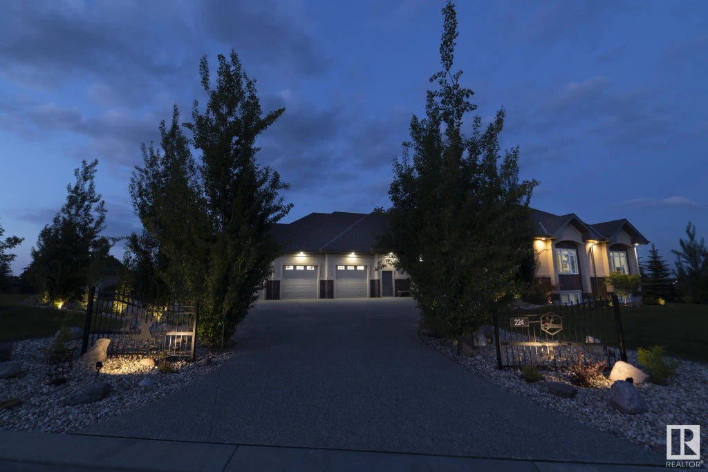 EXQUISITE HOME located in the exclusive community of Tuscany Hills in Sturgeon County. This IMMACULATE 3500 sq.ft bungalow is fully finished giving it nearly 7000 sq.ft of living space, COMPLETE WITH A SELF CONTAINED 1 BED SUITE W SEPARATE ENTRY. Featuring 12 FOOT CEILINGS, 6 bedrooms, 5 bathrooms, a HEATED QUAD GARAGE WITH ROOM FOR RV, this home's spacious layout is very useful and versatile. The main floor has an office area, 2 bedrooms, 3 bathrooms, a formal dining room, a gourmet kitchen with gas range and a massive island, a gorgeous family room, a dining area, and a large composite deck. Downstairs has 9 foot ceilings and features 4 bedrooms and 2 bathrooms, including a 1 bedroom self contained suite with separate entrance. There is also a large wet bar, living area and dining area. Also, there is plenty more space to put a gym or golf simulator or games area. The property is beautifully landscaped & manicured and has several fresh fruits and vegetables. PRICED BELOW REPLACEMENT VALUE.Welcome home