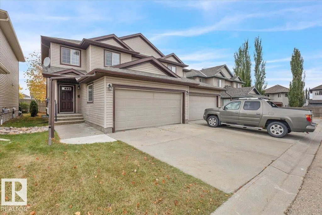This beautifully refreshed half duplex is move-in ready with upgrades completed in Sept 2025: fresh paint, new carpet, window coverings, commode, updated light fixtures, polished floors, new smoke alarm, cleaned furnace & fireplace, and updated door/drawer tracks. Step inside to a bright open-concept main floor with a spacious foyer, cozy living room featuring a corner gas fireplace, corner pantry, and dining area that opens to the patio. A 2-piece bath completes the main floor. Upstairs offers 3 bedrooms, 2 full baths, and a den. The primary suite has its own 4-piece ensuite. The unfinished basement is full of potential, ready for your personal touch. There is a second fridge in the basement. Outside, enjoy the patio, fenced yard, and double attached garage. Ample visitor parking. With fresh updates and a functional layout in a great location, this home is truly a must-see!