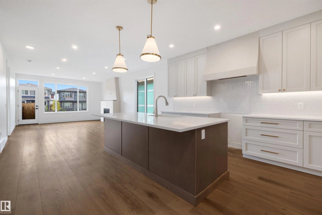 Discover the charm of this HRD Homes-built bungalow, offering 1,524 sq ft of thoughtfully designed main-floor living space in the sought-after Fenwyck community. The primary bedroom features a spacious walk-in closet and a private ensuite, complemented by a second main-floor bedroom for added versatility. The kitchen boasts elegant two-tone cabinets, a large island, and sleek chrome fixtures, all anchored by a custom plaster hood fan. The inviting living area is enhanced by a striking plaster fireplace, creating the perfect space to relax or entertain. Practical features include a double-car garage with hot and cold water bibs and the potential to customize the unfinished basement.