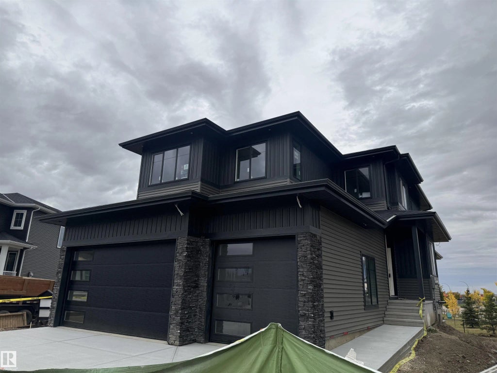 BRAND NEW! Craftsman Style Home by Local Builder LCM Construction located in the Hilldowns neighborhood, Spruce Grove! This corner lot 2 story home is over looking the neighbourhood Park ( future gate access to park), home offers exceptional curb appeal w/grey vinyl exterior, black window & door trim, black triple garage doors, with complimentary stone on the front. Main Floor boasts a modern floorplan w/9ft ceilings, luxury vinyl plank flooring, flex/office room, mudroom w/built in bench, 20ft open to below living room w/ feature wall/fireplace, large kitchen w/4ft wide quartz island, walkthrough pantry, SS appliances & modern black fixtures & hardware. Upstairs offers an open bonus room, carpet flooring, laundry room w/quartz countertop, 2 large bedrooms & a spacious primary bedroom w/5 piece ensuite, modern soaker tub, tiled shower, enclosed toilet & walk-in closet. Enjoy entertaining in the spacious backyard w/a covered deck feature over looking the neighbourhood park. October 17th Full Launch Date.