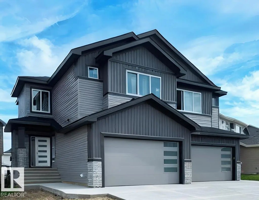 Built by Sunnyview Homes, huge 2000 sqft. half duplex with a double attached garage! The main floor features a bedroom/den with a closet and a full bath. The open to below living room boasts an electric fireplace with feature wall. The upgraded kitchen impresses with a central island, quartz countertops, 2-toned ceiling-height cabinetry with built in organizers, water line to the refrigerator, a gas line to the stove and a corner walk-in pantry and a good sized dining area. Going upstairs you'll find glass railing with maple handrail and step lighting, a bonus room, WI laundry room with sink. The primary bedroom features a WIC, coffered ceiling, accent wall, a luxurious 5-pc ensuite including a 6-jet Jacuzzi tub w/ a feature wall. This level has 2 additional good sized bedrooms sharing a 4 piece bathroom. Situated on a generous lot, this home offers a SEPARATE SIDE entrance to the bsmt. The garage is equipped with a gas line and floor drain. The size and upgrades are a rare find for a duplex! Must see.