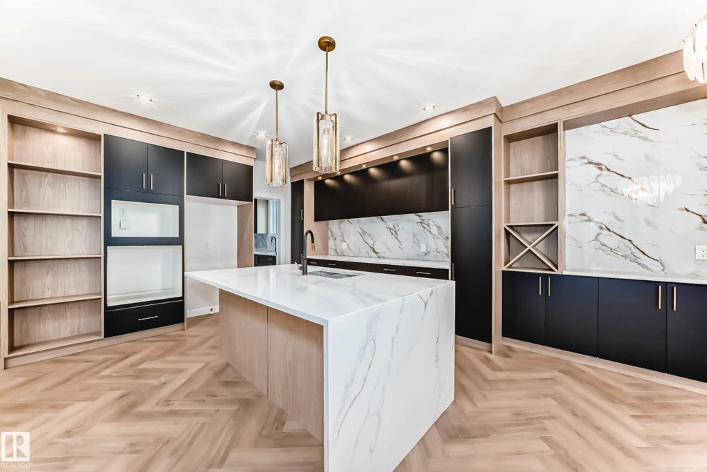 UPGRADED HOME BACKING GREENSPACE IN THE COMMUNITY OF MCLAUGHLIN! This home boasts 2557 sq/ft with 4 bedrooms, 3 full baths, bonus room & 9ft ceilings on all three levels. Main floor offers vinyl plank flooring, bedroom/den, family room with 18ft ceiling, fireplace. Kitchen, with modern high cabinetry, quartz countertops, island, & BUTLERS PANTRY/SPICE KITCHEN, is made for cooking family meals and entertaining. Spacious dinning area with ample sunlight is perfect for get togethers. The 3 piece bath finishes the main level. Walk up stairs to master bedroom with 5 piece ensuite & spacious walk in closet, 2 bedrooms with walk in closets, full bath, laundry and bonus room. Unfinished basement with separate entrance and roughed in bathroom is waiting for creative ideas. Public transit to Edmonton, & more than 40 km of trails, your dream home home awaits. Includes:DECK/TRIPLE PANE WINDOWS/ WIRELESS SPEAKERS/ GAS HOOKUP ON DECK