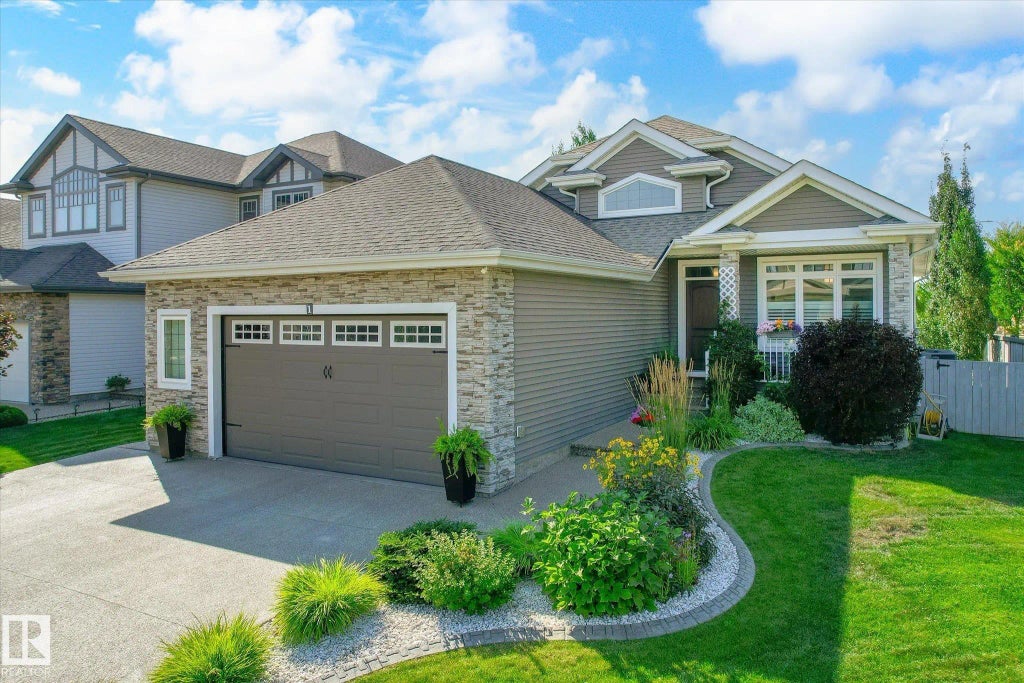 A rare executive style bungalow, meticulously maintained, and fully loaded awaiting its new lucky homeowners in Spruce Grove! The home's beauty begins with stunning front landscaping on the corner lot, with sure to impress curb appeal as you enter the front door. Passing by the front den, you're welcomed into the open concept main floor adorned with hardwood floors, expansive chefs kitchen with SS appliances and gas stove, and cozy living room with gas fireplace and vaulted ceilings too. We can't forget the walkthrough pantry into the laundry/back mud room with access to the oversized HEATED double attached garage including man door to the backyard. Completing the main floor is the generous primary bedroom with 5 pc ensuite and walk in closet. The professionally finished basement adds another 3 great sized bedrooms, full bathroom, and living room with wet bar. In floor heating makes this space comfy year round! Finished off with a private backyard and fantastic location - this home is tough to beat!
