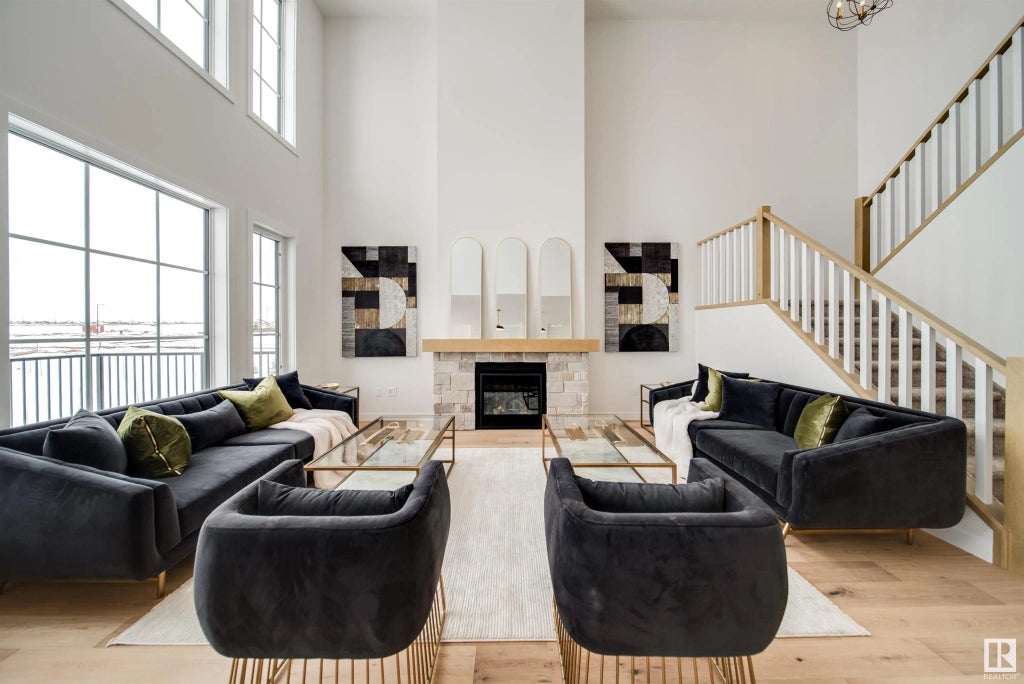 Welcome to The Vantablack by award winning Justin Gray Homes, situated on 30' pocket POND BACKING WALKOUT lot in Cherot, offering 2519 sqft of refined living space in a professionally curated French Country palette by CM Interiors. Featuring soaring open-to-below ceilings, 9' ceilings & 8' doors on the main, HARDWOOD floors & a cozy GAS fireplace. The main floor den w/glass walls is perfect for a stylish home office. An OVERSIZED DBL GARAGE leads to a mudroom w/custom MDF built-ins. Through JG’s iconic archways, step into a WALKTHROUGH pantry & chef’s kitchen w/huge QUARTZ island w/premium dove-tailed cabinetry. Enjoy sunset pond views off your 13'6" x 10' REAR DECK. Upstairs find 3 spacious bdrms incld. a dreamy primary w/VAULTED ceilings & wainscoting wall feature, spa-like 5pc ensuite & massive WIC w/convenient direct access to the laundry rm. Located near future schools, rec centre, parks & trails - this home blends luxury & lifestyle. *Photos of similar model, layout/finishes may differ.