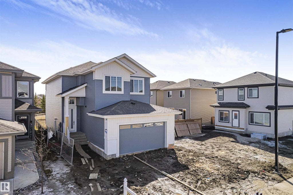 BACKING TO PARK || Gorgeous Fully Upgraded Home with Double Garage in Stony Plain! This custom-built beauty is a dream come true! The main floor features a versatile den/office (could be used as a bedroom) with stunning feature wall, a half bath, and a chef-inspired kitchen with a unique center island and spacious pantry. Extended Kitchen. The Open to above living area boasts a striking custom wall, creating a stunning view, while the dining room opens to a deck, perfect for entertaining. Upstairs, you'll find a spacious bonus room with beautiful feature wall & fireplace. A huge primary bedroom with stunning ceiling design & own private balcony overlooking park, a luxurious 5-piece ensuite with a walk-in closet. Two more bedrooms with feature wall in each & closet in each bedroom. Common bathroom on upper level. For added convenience, the laundry is located on the second floor. The unfinished basement with SEPARATE ENTRANCE is full of potential for your personal touch.
